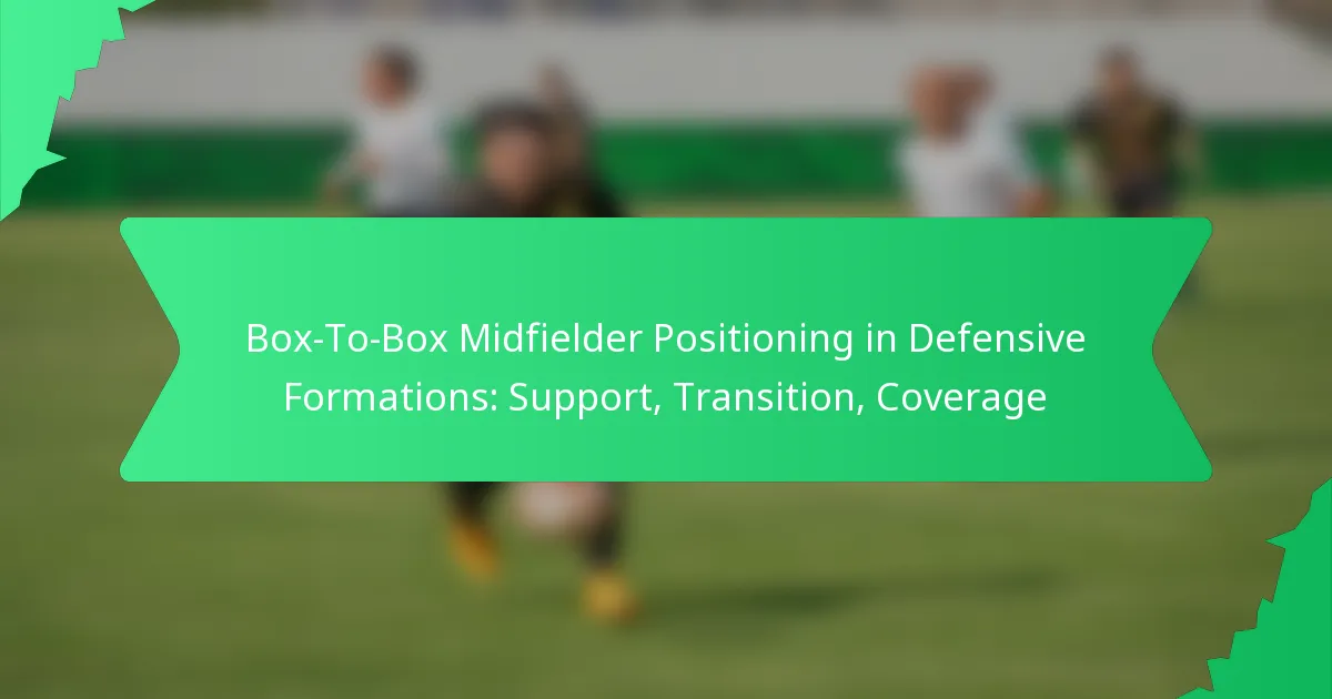 A box-to-box midfielder plays a crucial role in supporting defensive formations by providing coverage, engaging in tackles, and facilitating transitions between defense and attack. Their positioning and awareness help to block passing lanes and track back to assist defenders, ensuring a cohesive unit on the field.