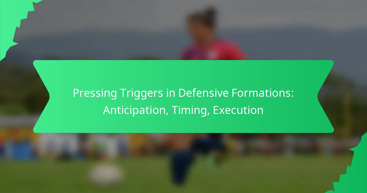 Pressing triggers in defensive formations are vital cues that signal a team to launch a coordinated pressing action against their opponents. Mastering anticipation and timing in these triggers enables players to effectively disrupt the opponent’s build-up play and regain possession, enhancing the overall defensive strategy.